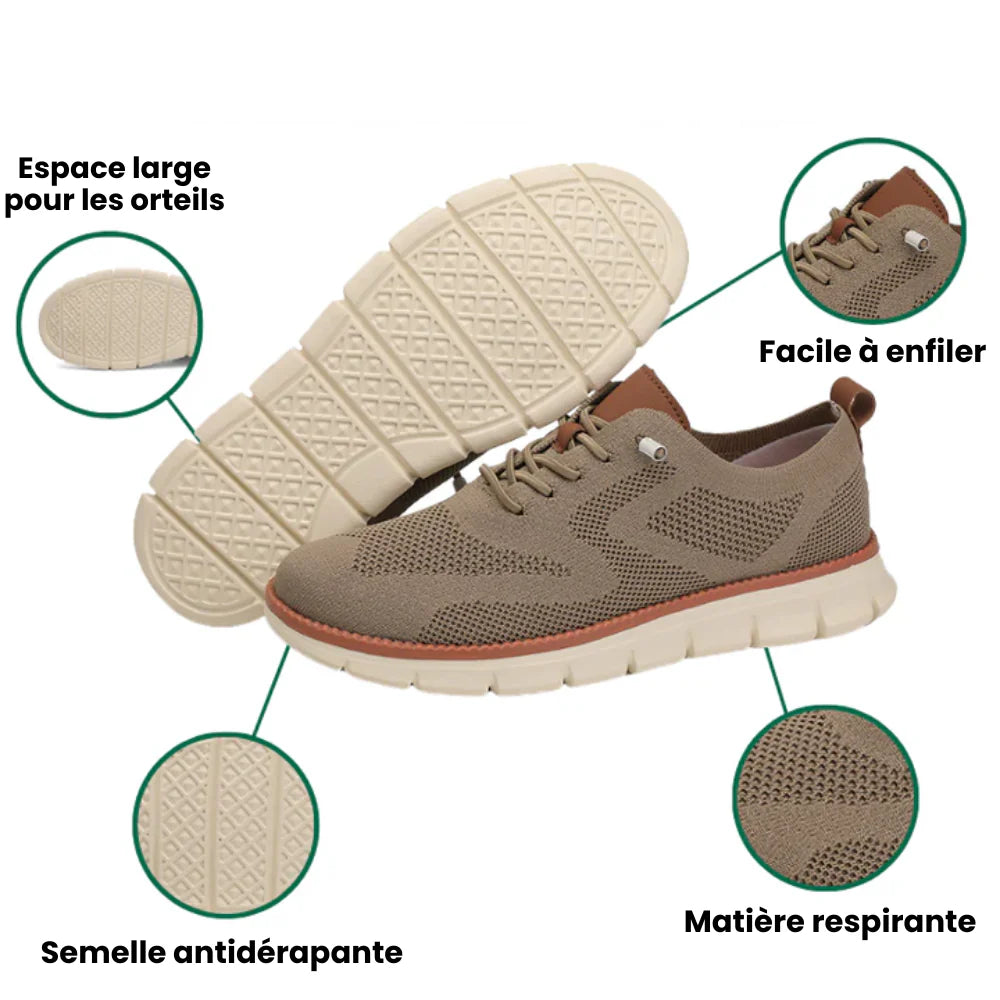 Nos chaussures élégantes ultra-confortables associent un tissu respirant, un espace large pour les orteils et une semelle flexible qui s’adapte à votre pied.